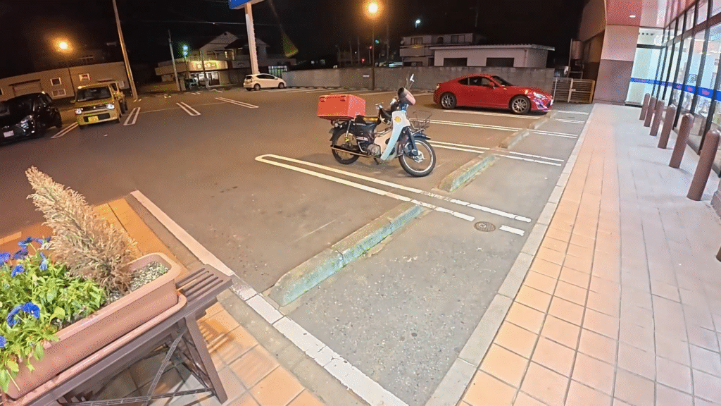 店を出ると、いわゆる「郵政ボックス」を積んだカブを見かけた。