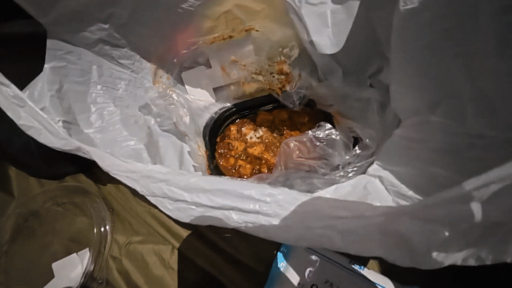 スーパーの電子レンジで麻婆豆腐を温めたら、やりすぎてフタがゆがんだ。